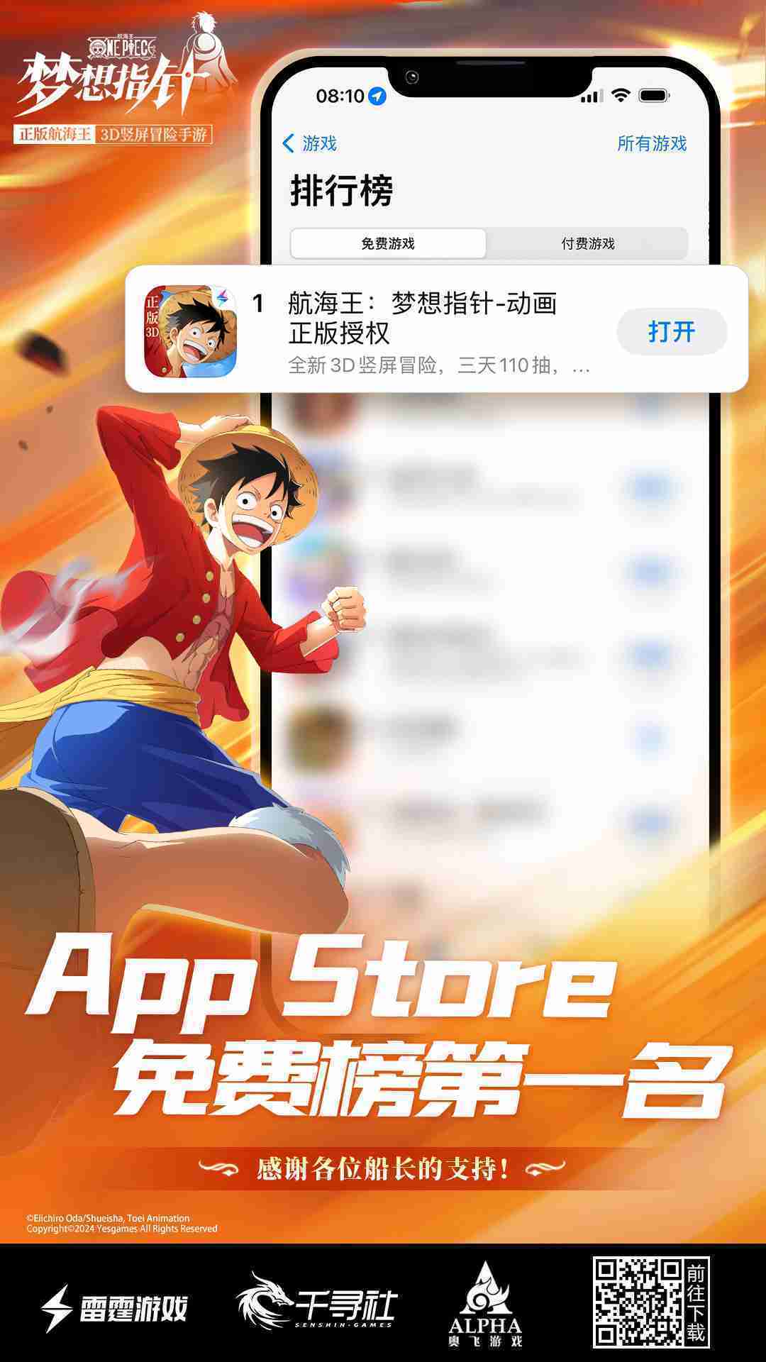 《航海王::::梦想指针》登顶App Store免费榜,,,公测福利汇总!!!