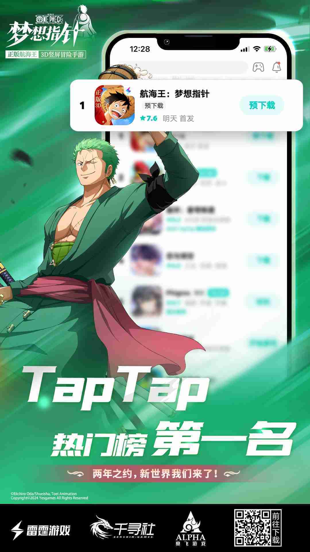 4月1日,,,手游《航海王:::梦想指针》正式公测,,上线仅2小时不到就登上了App Store免费榜Top1,,,,与TapTap热门榜第一。。